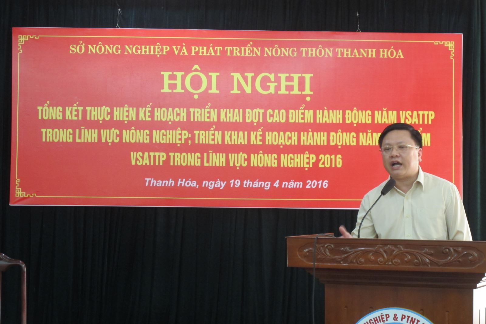Tại Hội nghị các đại biểu đã được nghe nội dung của Báo cáo tổng kết đợt cao điểm hành động Năm VSATTP trong lĩnh vực nông nghiệp; Kế hoạch hành động Năm cao điểm vệ sinh an toàn thực phẩm trong lĩnh vực nông nghiệp; Chỉ thị số 13/CT-UBND ngày 29/3/2016 của UBND tỉnh về việc tăng cường công tác thanh tra, kiểm tra, xử lý vi phạm và công khai vi phạm trong sản xuất, kinh doanh vật tư nông nghiệp, an toàn thực phẩm nông lâm thủy sản trên địa bàn tỉnh Thanh Hóa và một số văn bản triển khai công tác quản lý chất lượng ATTP năm 2016.