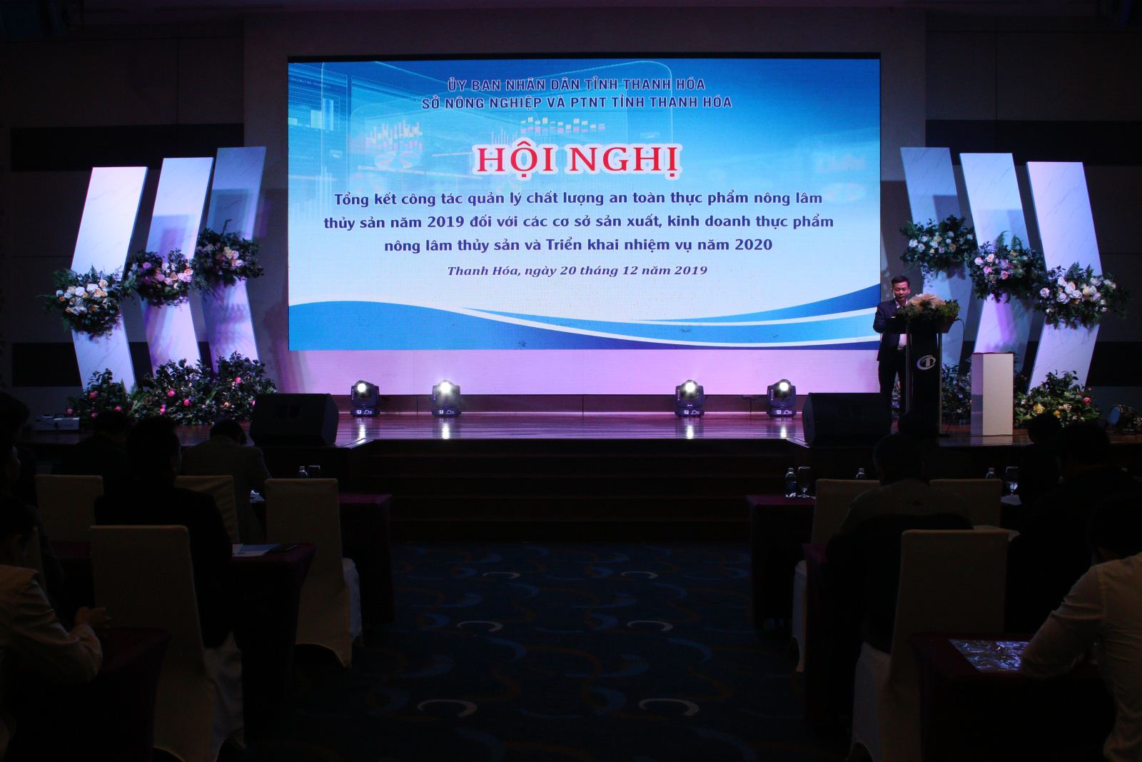 Đại diện Chi cục Quản lý chất lượng Nông lâm sản và Thuỷ sản thông qua báo cáo “Tổng kết công tác quản lý chất lượng an toàn thực phẩm nông lâm thủy sản năm 2019 đối với các cơ sở sản xuất, kinh doanh thực phẩm nông lâm thủy sản và triển khai nhiệm vụ năm 2020”; Triển khai Quyết định số 552/QĐ-SNN&PTNT ngày 22/8/2019 của Giám đốc Sở Nông nghiệp và PTNT về phân công nhiệm vụ quản lý các cơ sở sản xuất, kinh doanh thực phẩm nông, lâm, thủy sản cho các Chi cục thuộc Sở Nông nghiệp và PTNT Thanh Hóa.