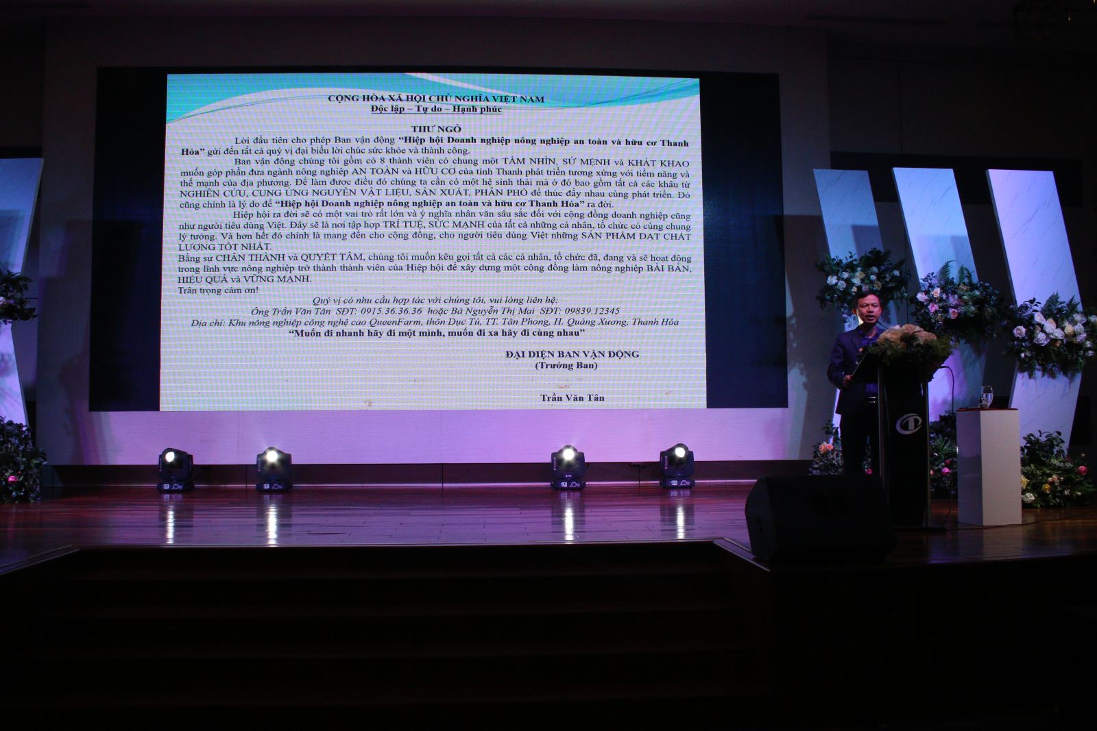 Đại diện Ban vận động thành lập Hiệp hội doanh nghiệp nông nghiệp an toàn và hữu cơ TH trình bày tại Hội nghị