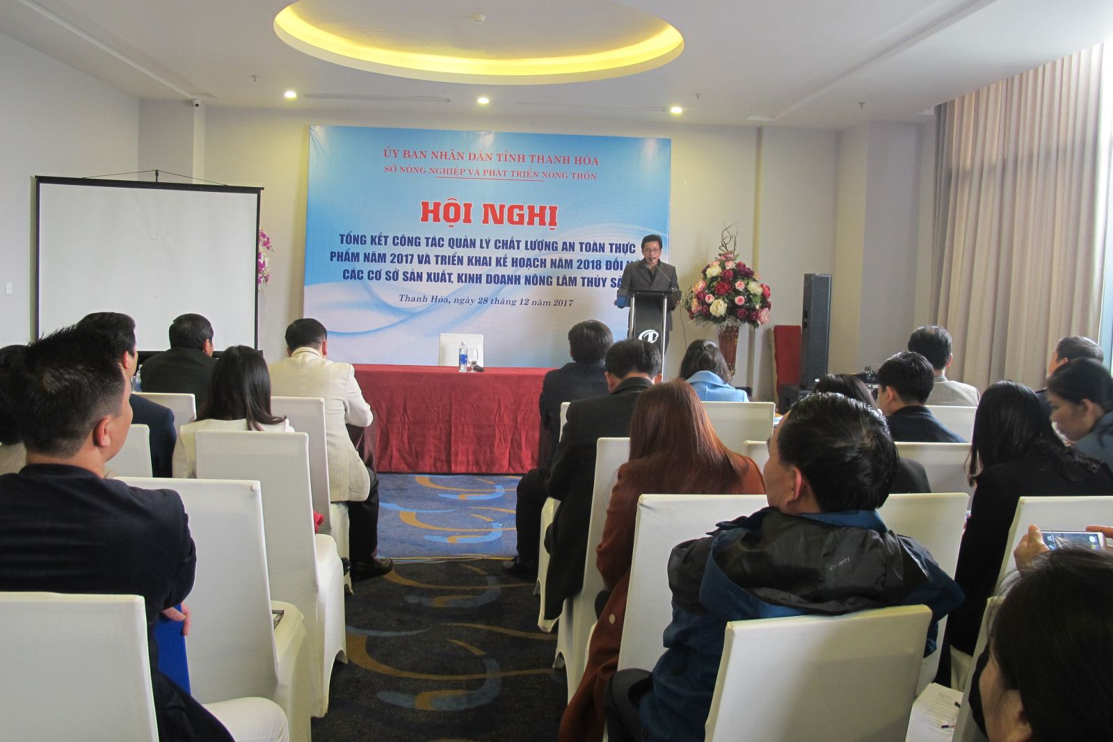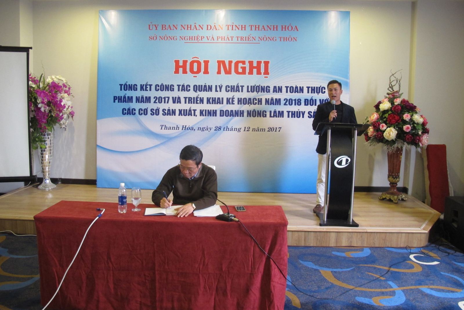 Ngày 28/12/2017, Sở Nông nghiệp và Phát triển nông thôn đã tổ chức Hội nghị “Tổng kết công tác quản lý chất lượng an toàn thực phẩm năm 2017 và Triển khai Kế hoạch năm 2018 đối với các cơ sở sản xuất, kinh doanh nông lâm thuỷ sản”. Đồng chí Mai Nhữ Thắng - Phó Giám đốc Sở dự và khai mạc hội nghị. Đồng chí Đỗ Xuân Trường - Chi cục trưởng Chi cục Quản lý chất lượng nông, lâm sản và thủy sản được Giám đốc Sở NN&PTNT ủy quyền chủ trì Hội nghị.