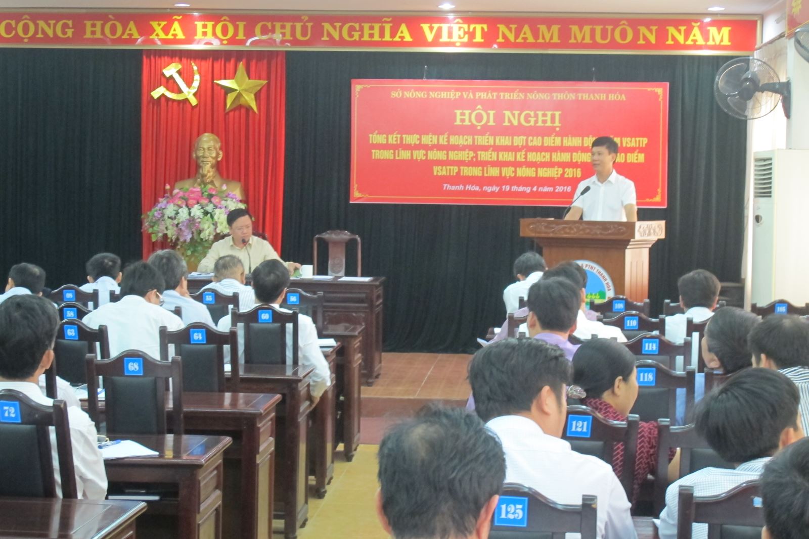 Tại Hội nghị các đại biểu đã được nghe nội dung của Báo cáo tổng kết đợt cao điểm hành động Năm VSATTP trong lĩnh vực nông nghiệp; Kế hoạch hành động Năm cao điểm vệ sinh an toàn thực phẩm trong lĩnh vực nông nghiệp; Chỉ thị số 13/CT-UBND ngày 29/3/2016 của UBND tỉnh về việc tăng cường công tác thanh tra, kiểm tra, xử lý vi phạm và công khai vi phạm trong sản xuất, kinh doanh vật tư nông nghiệp, an toàn thực phẩm nông lâm thủy sản trên địa bàn tỉnh Thanh Hóa và một số văn bản triển khai công tác quản lý chất lượng ATTP năm 2016.